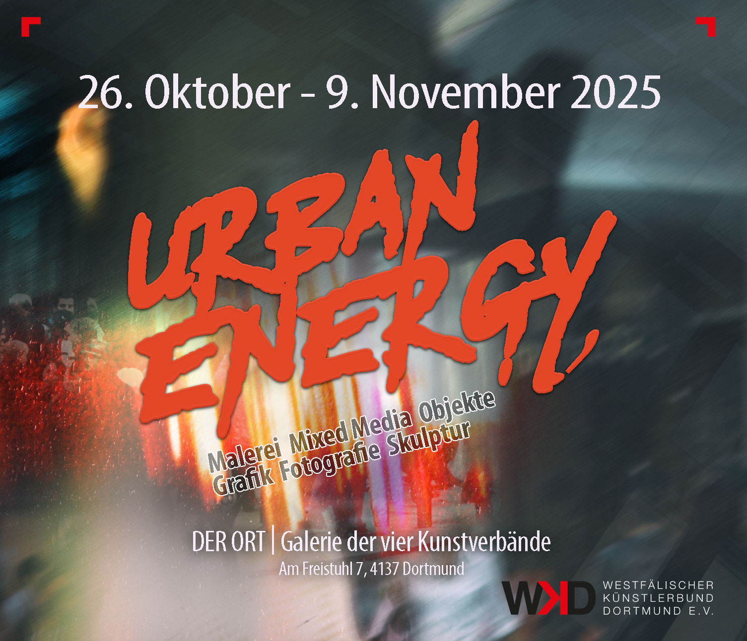 Aktuell Ausstellungen / Events WKD Aktuell 26.10. – 9.11. 2025 „Urban Energy“ | KünstlerInnen des WKD | DER ORT Galerie der vier Kunstverbände